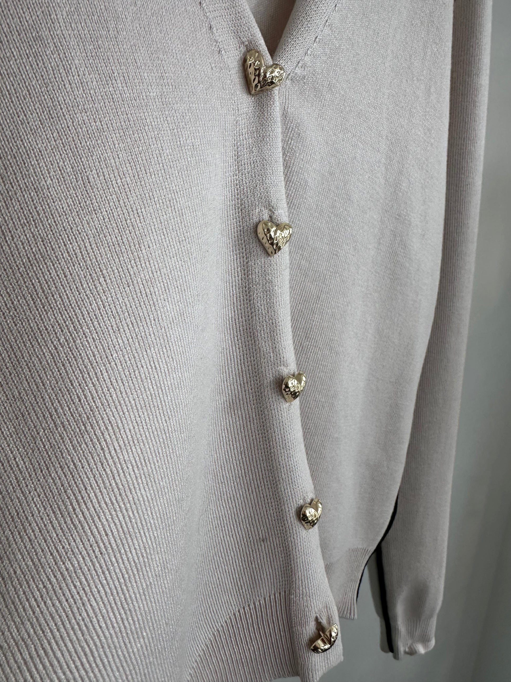 Say hello to the Hollie Heart Cardigan, a cosy layer with just the right amount of charm. Available in stone, black and gold accents, this cardigan brings a playful, Parisian-inspired twist to your autumn wardrobe.